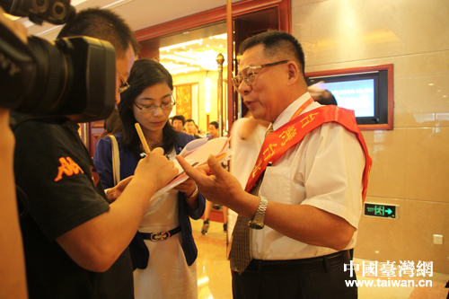 臺灣嘉賓接受媒體采訪。(中國臺灣網 孟雅詩 攝)