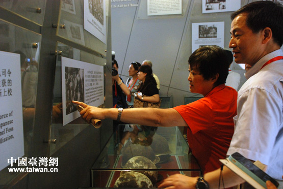 嘉賓們參觀飛虎奇兵館。圖為陳賡將軍之女陳知進為大家講述照片中父親的故事。(中國臺灣網(wǎng) 李丹 攝)