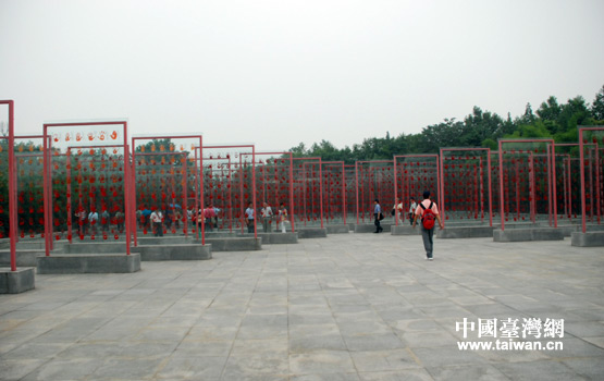 抗戰(zhàn)老兵手印廣場(chǎng),手印碑林呈勝利的“V”字型。重重疊疊的手印,形成排山倒海之勢(shì),這就是民族力量的真切體現(xiàn)。(中國(guó)臺(tái)灣網(wǎng) 李丹 攝)