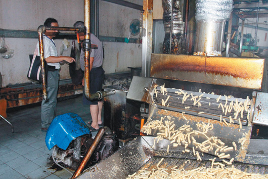 嘉義市衛(wèi)生局昨天突襲稽查嘉義市百年老店茂州食品工廠,發(fā)現(xiàn)環(huán)境臟亂、機(jī)器卡油垢。圖片來源:臺(tái)灣《聯(lián)合報(bào)》