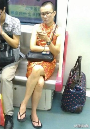“女版文章”穿旗袍搭乘臺灣捷運(yùn)。(圖片來自網(wǎng)絡(luò))