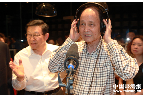 20日下午,海協會會長陳德銘夫婦與;鶗麻L林中森夫婦一起在滬參觀了上海電影博物館與東方明珠。他們在參觀中嘗試電影配音、體驗攝影棚錄像,并詳細了解了上海的歷史發展。圖為林中森體驗電影配音。(中國臺灣網 王偉 攝)