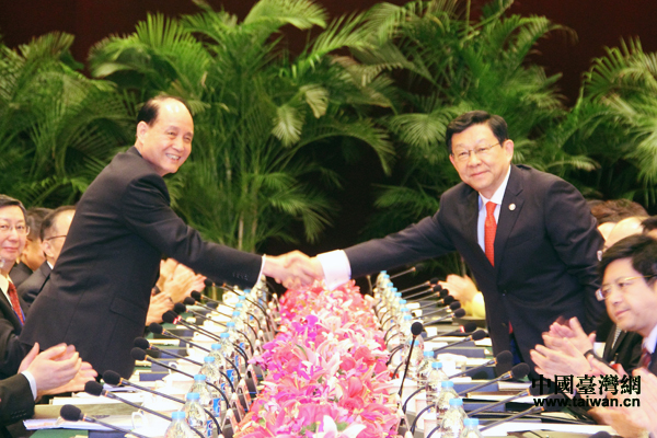 昨天中午,海協會為抵滬參加兩岸兩會第九次會談的海基會董事長林中森一行舉辦了歡迎儀式。在歡迎儀式中,海協會會長陳德銘表示,面對經濟全球化和區域一體化,面對金融危機肆虐和各國經濟結構調整,面對國際科學技術迅猛發展,兩岸不僅應該規避運營化的風險,還應該優勢互補、產業聯合,攜起手來提高我們的國際競爭力;兩岸服務貿易協議的簽訂,是落實ECFA的重要里程碑。