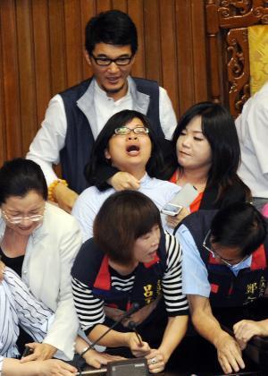 “立法院臨時(shí)會(huì)”原定處理證券交易所得稅修法、公共債務(wù)法與核四“公投”案等,未料“立委”從上午6時(shí)30分起就上演全武行,場(chǎng)面一片混亂,完全失焦。“藍(lán)委”王惠美控訴,“綠委”姚文智“從后面抱她、拉她雙臂”,氣得她當(dāng)場(chǎng)痛哭、尖叫;姚文智回應(yīng),沖突難免會(huì)有肢體推擠,但絕未暴力相向。