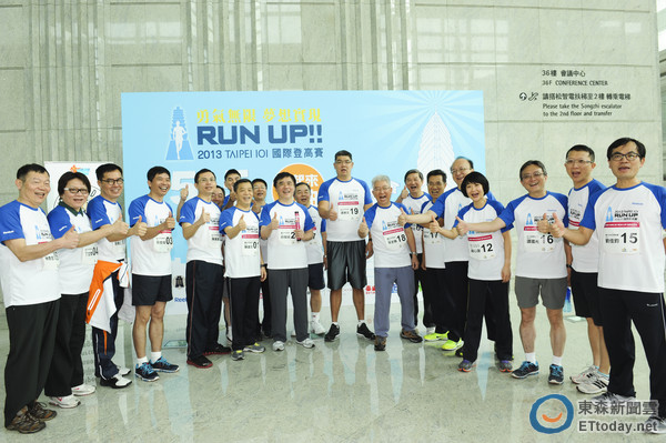 臺北101登高賽,由連勝文(中)交棒給市長郝龍斌,意外成為媒體焦點。(圖片來源:臺北市政府)