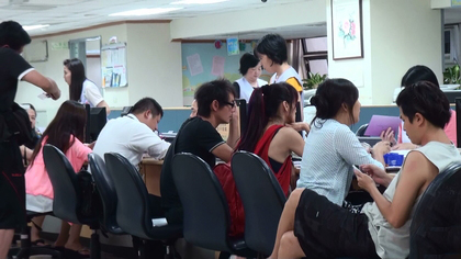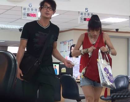 黃品源(左)拿著收據,與蜜兒準備領新身份證,2人無言也面無表情,正式結束婚姻關系。(圖片來自臺媒)