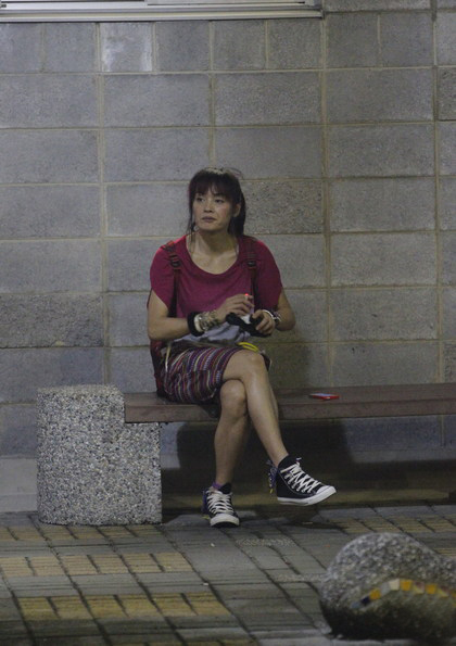 蜜兒孤單坐在路邊抽煙,神情有點落寞。(圖片來自臺媒)