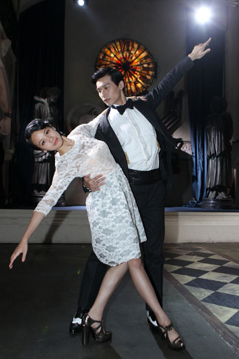 嚴爵(右)拍攝前一天特地練跳華爾茲。(圖片來自臺媒)