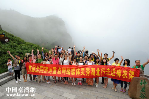 首屆中國旅游網絡媒體靈秀湖北行”記者走進神農架生態旅游區。(中國臺灣網 李杰 攝)