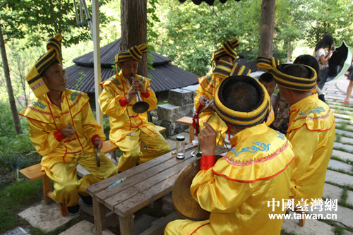 神農架林區內進行表演的民間藝人。(中國臺灣網 李杰 攝)