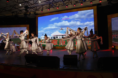 蒙古族姑娘在歡迎宴會上表演歌舞(中國臺灣網 蕪同 攝)