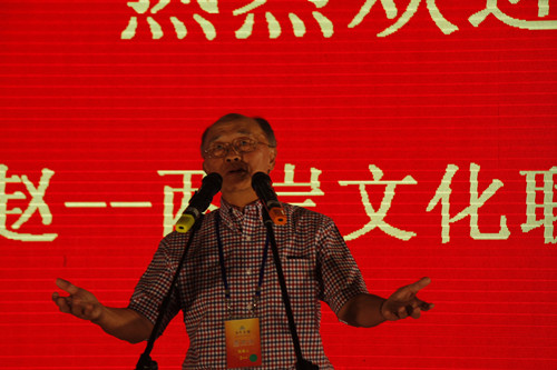 臺灣嘉賓團榮譽團長程建人在歡迎晚宴上致辭(中國臺灣網 蕪同 攝)