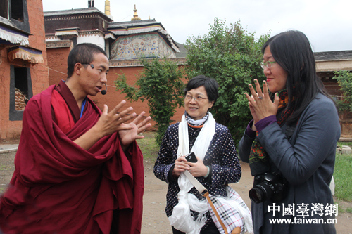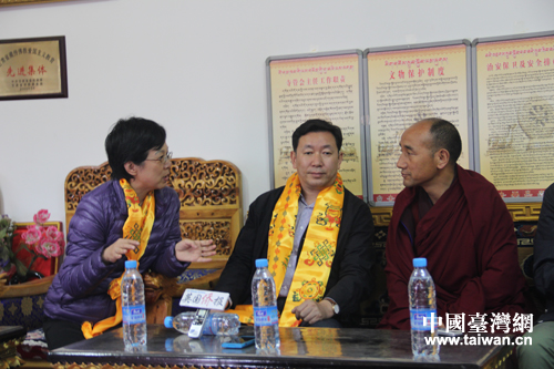 郎木寺管委會主任洛藏加措向記者們介紹情況(中國臺灣網 齊曉靖 攝)