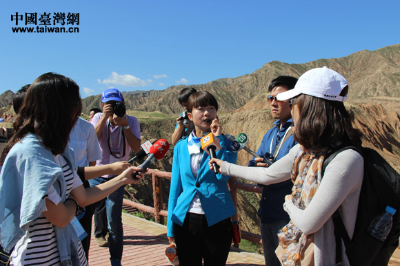 “海峽兩岸記者西北行”聯合采訪團參訪張掖丹霞國家地質公園,感受中國第一七彩丘陵神奇景觀。(中國臺灣網 王文英 攝)