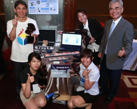 在獲獎人部分,聯合大學電子工程學系3位大學女生顏資容、黃筠庭、黃鈺珊作品“組合式LED行動電子廣告牌與無線傳輸之應用”,由LED電子廣告牌發想,結合智能手持裝置,通過藍芽實時更新廣告牌訊息,也可以像拼樂高玩具一樣,將LED模塊任意組合。