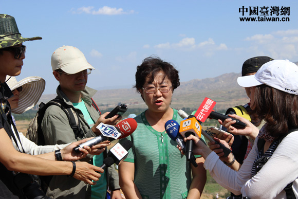 中衛市長在沙漠向兩岸記者介紹中衛市治沙情況(中國臺灣網 王文英 攝)