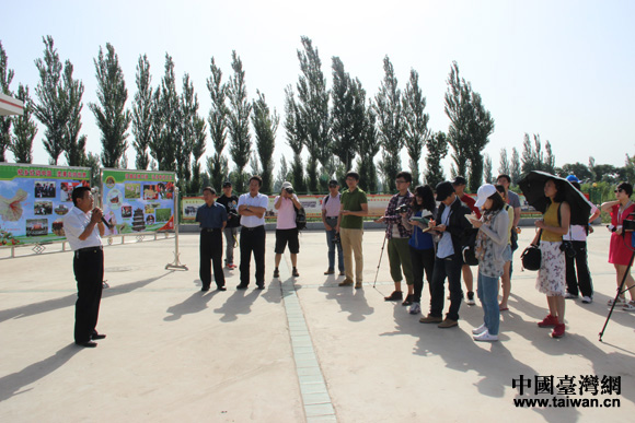 中寧縣領導向兩岸記者介紹中寧枸杞種植情況。(中國臺灣網 王文英 攝)