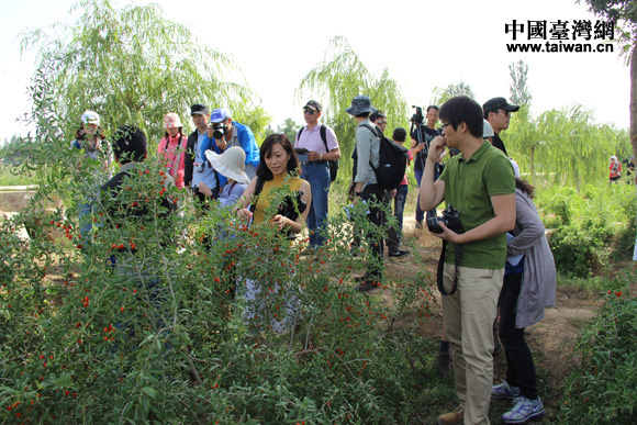 兩岸記者在中寧品嘗新鮮枸杞。(中國(guó)臺(tái)灣網(wǎng) 王文英 攝)