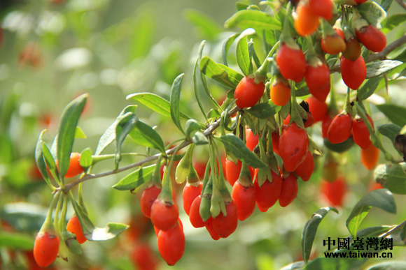 色彩艷麗、鮮紅欲滴的新鮮枸杞。(中國(guó)臺(tái)灣網(wǎng) 王文英 攝)