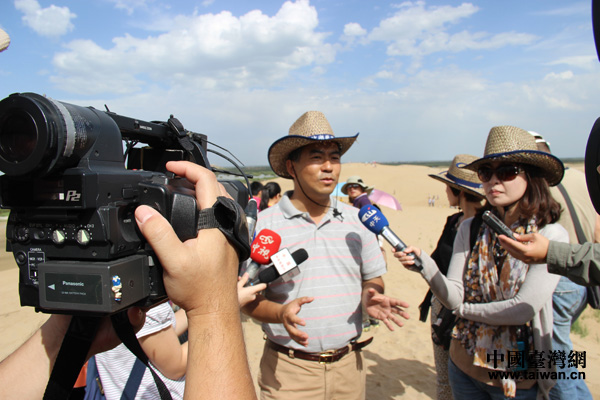 沙湖管理人員向兩岸記者介紹沙湖旅游開發情況。(中國臺灣網 王文英 攝)