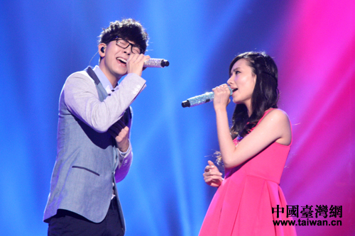 劉惜君、胡夏深情對唱《你最珍貴》,現場粉絲高呼他們“在一起”。(中國臺灣網 郜利敏 攝)