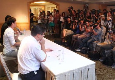 李圣杰召開記者會,說明未婚生子。(圖片來自臺媒)