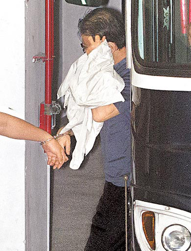 黃季敏被押解出庭時以外套遮臉。(圖片來自臺媒)