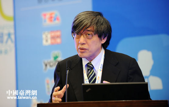臺北市電腦公會顧問、臺灣網路暨電子商務產業發展協會理事長詹宏志先生代表論壇主辦方宣讀兩岸電子商務發展倡議書。(中國臺灣網 于斯文 攝)