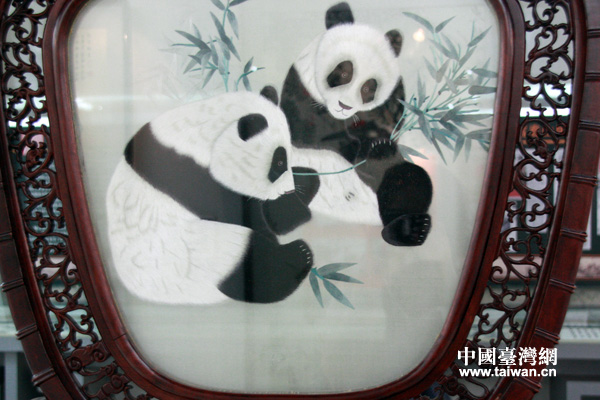 湘繡作品熊貓。(中國臺灣網 高斯斯 攝)