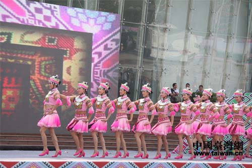 中國臺灣網8月18日恩施消息 18日上午,“再約女兒會——鄂臺少數民族手牽手”活動開幕式在恩施州民族廣場舉行。為了對遠道而來的臺灣少數民族同胞表示熱烈歡迎,恩施土家族展示了具有民族特色的歌舞,臺灣少數民族參訪團也表演了原住民族鄒族文化創作的樂舞。