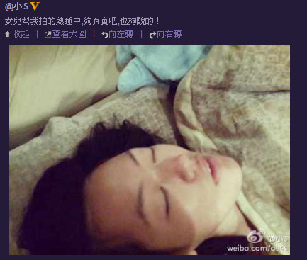 小S日前上傳女兒偷拍的睡姿照,自嘲又丑又真實。(圖片截取自小S臉譜)