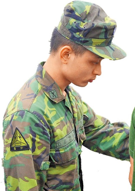 前臺軍542旅憲兵官蔡忠銘,發現洪仲丘的體檢表身體質量指數(BMI)過高,不能送禁閉,拒絕配合簽辦,事后還被記大過。圖為7月18日他前往北部軍檢院區應訊。(圖片來自臺媒)