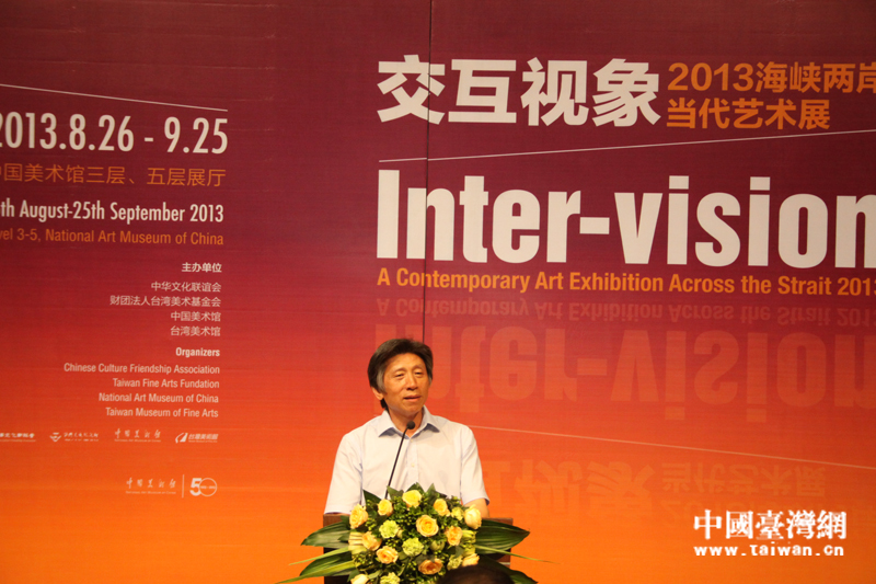 由中華文化聯誼會、臺灣美術基金會、中國美術館、臺灣美術館聯合主辦的“2013海峽兩岸當代藝術展”,8月26日在中國美術館開幕,中國美術館館長范迪安在開幕式上致辭。(中國臺灣網 蕪同 攝)