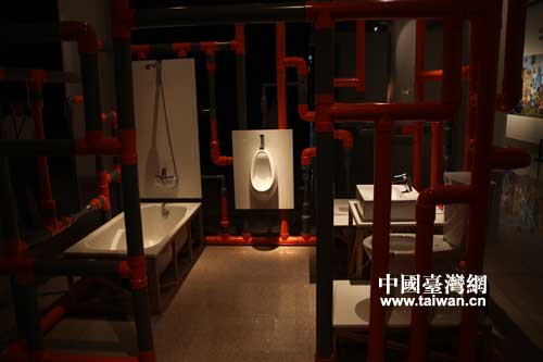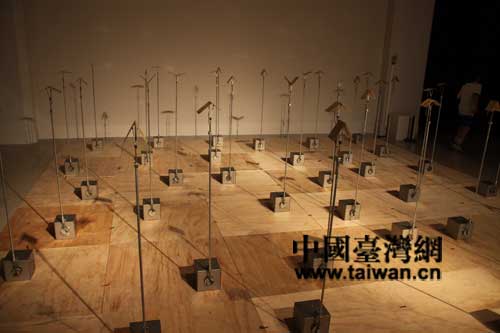 臺灣藝術家蔡坤霖作品“伏流”。這是一件有聲音的作品,但……由于記者的藝術悟性較差,暫未看懂(中國臺灣網 蕪同 攝)