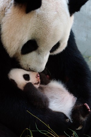 圓仔與媽媽面對面躺著,這樣圓圓可以隨時抱起圓仔,圓仔餓了,也可以馬上找到喝奶的方向,這是牠們母子之間,最有默契的相處姿勢。工作人員說,“圓圓照顧圓仔是無微不至,今天早上我們秤重的紀(jì)錄是顯示圓仔增重到3162.6克。”