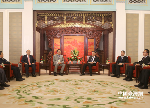 9月2日下午,中共中央政治局委員、國務院副總理汪洋在中南海紫光閣會見了由臺灣區電機電子工業同業公會理事長郭臺強率領的臺灣電電公會參訪團一行。(中國臺灣網 田云鵬 攝)