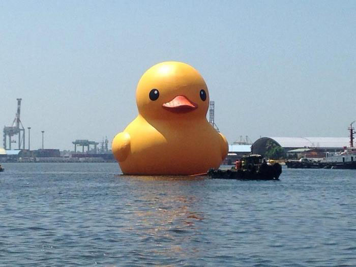 據報道,由荷蘭藝術家霍夫曼設計的黃色小鴨風靡全球,19日下午在高雄光榮碼頭風光登場。但為躲避超強臺風,小黃鴨20日中午被消氣撤下。在19日到20日不到24小時內,小黃鴨吸引近40萬人觀賞。