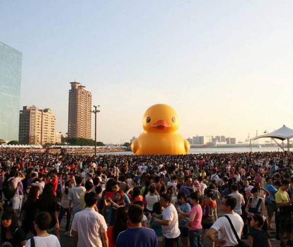 小黃鴨在高雄港展出,不到一個星期已經有40萬人前往參觀。(圖片來自臺媒)
