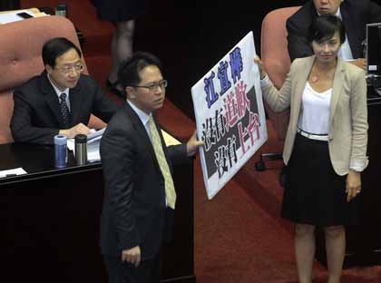 “立法院院會”報告事項處理完后,“立法院長”王金平宣布休息協(xié)商。江宜樺枯坐一上午,目前仍無法上臺作施政報告。