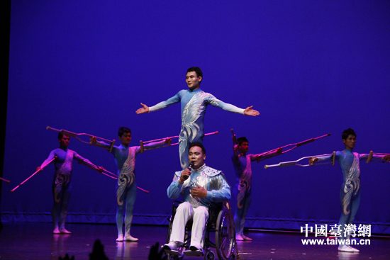 北京心靈呼喚藝術團歌手常嘯(殘肢)與劉思佳(殘肢)等表演小音樂劇《翔》。(中國臺灣網 普燕 攝)