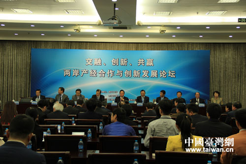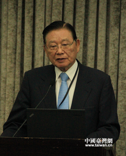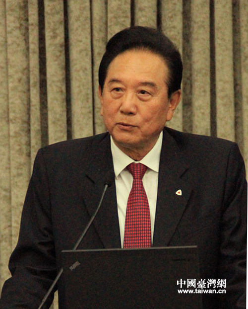 臺灣;鶗岸麻L江丙坤在“兩岸產(chǎn)經(jīng)合作與創(chuàng)新發(fā)展論壇”上致辭。(中國臺灣網(wǎng) 扶海濤 攝)