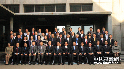 參加“兩岸產(chǎn)經(jīng)合作與創(chuàng)新發(fā)展論壇”的兩岸專家學(xué)者合影留念。(中國臺灣網(wǎng) 扶海濤 攝)
