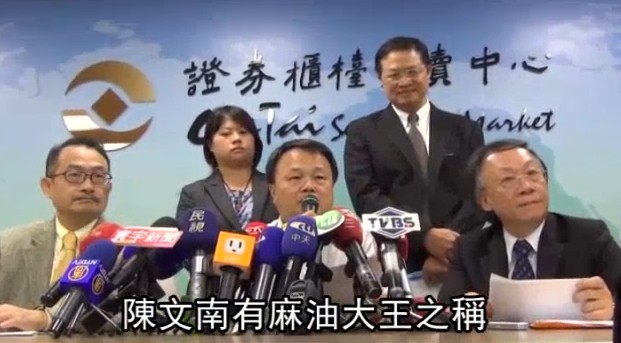 周四認錯,富味鄉本周一才保證油品沒問題,但董事長陳文南(中)及經理王彬任(右)昨坦承產品含棉籽油,鞠躬致歉。(臺媒圖)