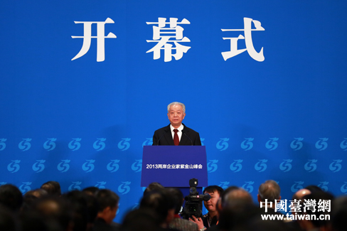 兩岸企業(yè)家峰會(huì)副理事長(zhǎng)盛華仁主持開幕式。(中國(guó)臺(tái)灣網(wǎng) 王偉 攝)