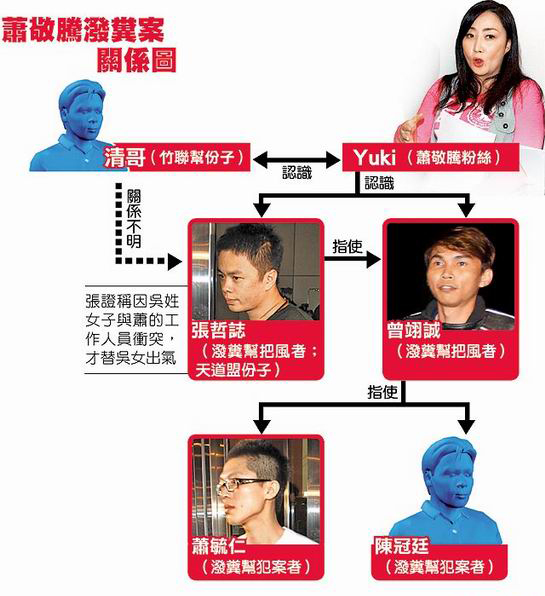 蕭敬騰潑糞案關系圖。(圖片來自臺媒)