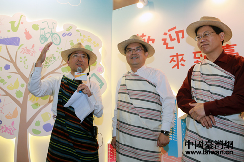 與臺北首次聯袂舉辦城市文創特展的臺中,則重點展示其以兩區(大都會歌劇院藝文專區、大宅門特區)三節(媽祖文化節、爵士文化節、創意臺中)為代表的城市文創特色,臺中市副市長蔡炳坤率團參展。他穿上泰雅族的編織衣裳戴上草帽,在展區載歌載舞并親自導覽,吸引許多觀眾駐足參觀。近年來臺中在大陸參與各種展覽的效果很好,蔡炳坤希望臺中文創業者能在北京找到更多商機。