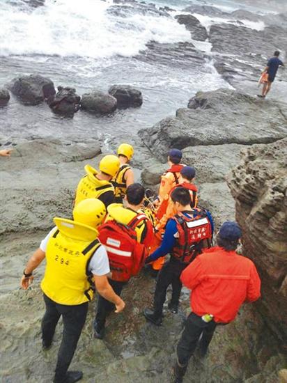 在強(qiáng)浪侵襲漲退間,岸上學(xué)員死命抓著礁巖的細(xì)縫不放,甚至連指甲都握到斷裂,幾乎無力再走回岸邊。岸上游客擔(dān)心瘋狗浪再來,趕緊通報警消,包括警消、海巡、空勤總隊出動所有人力,分陸海空趕往救援。