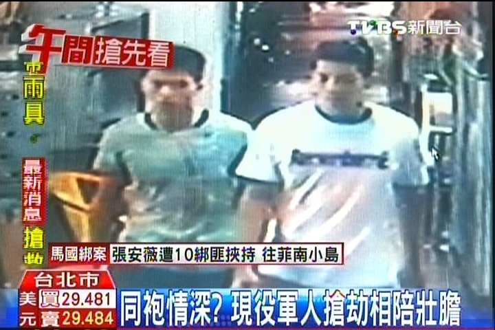 畫面右邊的是徐姓嫌犯、左邊的是林姓嫌犯,一個人在部隊,另一個人到高雄受訓(xùn),知道警察找上門嚇得發(fā)抖,直到移送法辦,仍然把頭包得超緊。兩人是當(dāng)兵同梯,在同個單位服務(wù),同袍情深,搶劫也作伴。(中國臺灣網(wǎng) 周劍)