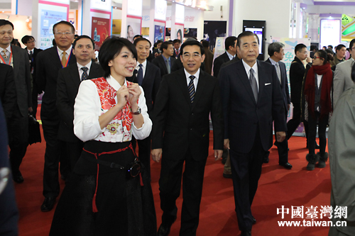 11月21日博覽會(huì)開幕,北京市長(zhǎng)王安順(中)、臺(tái)灣貿(mào)易中心董事長(zhǎng)王志剛來(lái)醫(yī)美館參觀。(中國(guó)臺(tái)灣網(wǎng) 發(fā))