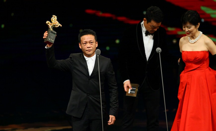 李康生上臺前,親密伙伴蔡明亮興奮地親吻他,李康生稱帝感言:“要在各位影帝面前拿到最佳男主角,比登天還難,如果可以分成5份,我愿意分給大家。”